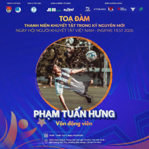 Ngày 14/3/2026, tại Thành phố Hồ Chí Minh, chương trình Tọa đàm “Thanh niên khuyết tật trong kỷ nguyên mới” nằm trong khuôn khổ sự kiện Inspire Fest 2026 do Hội Người khuyết tật Việt Nam tổ chức. Chương trình mang đến không gian đối thoại và chia sẻ đầy cảm hứng, nơi những câu chuyện đời thực được kể lại bởi chính những người đã và đang vượt qua giới hạn của bản thân để khẳng định giá trị của mình trong xã hội.